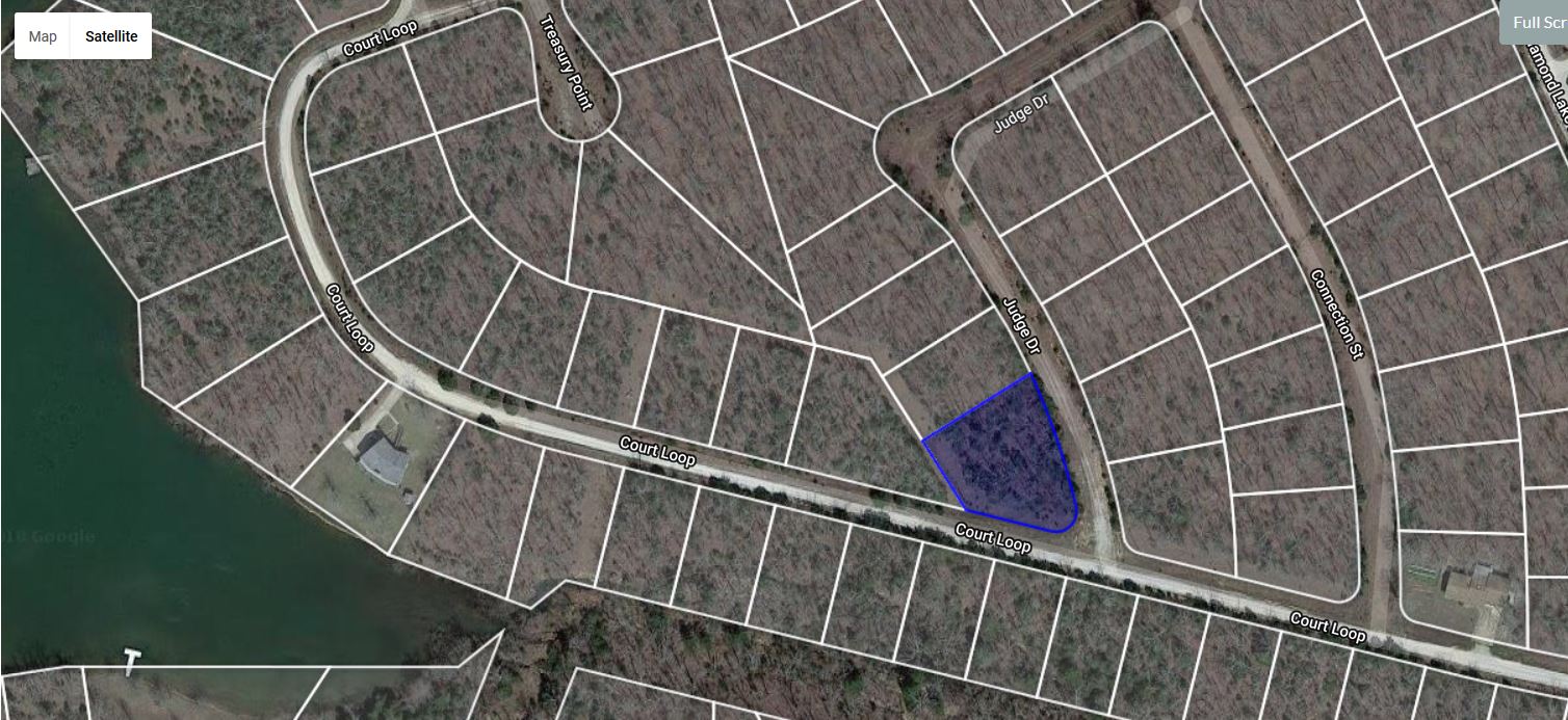 This very nice corner lot is just shy of 1/2 acre (0.49 acre). The street address is on Judge, but could just as easily be changed to Court Drive (also called "Court Loop") which is one of the main drives in this part of the subdivision. Access is incredibly easy on this well maintained gravel road. There is a fire hydrant at the corner and electricity is at the lot, so tapping into the rural municipal water and power is super easy. With mature trees (mostly oaks) and a slight slope upwards from the road, any home you build here is sure to have an elegant presentation. As of June, 2018, there are two neighbors on Court Road. About 600' this property is where lakeside frontage begins on the other side of the road. You will find other lots in this area listed for twice as much and they aren't nearly as nice as this one! Don't wait...this lot won't last long at this price!